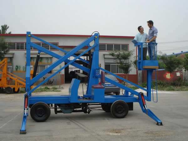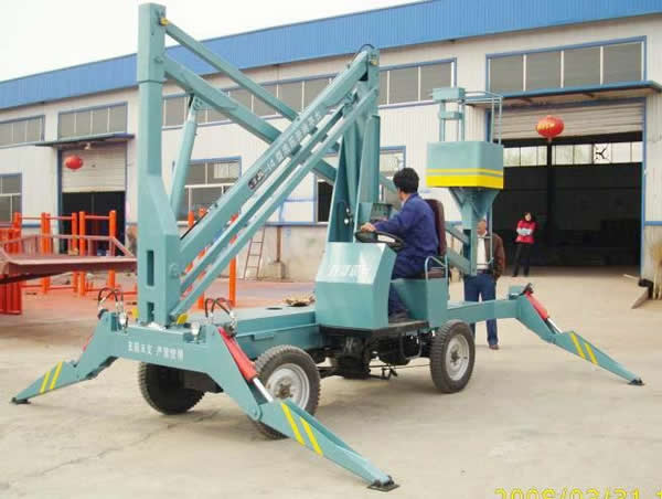 曲臂式升降平臺規格:外形尺寸:3900*2200*2900 (MM)臺面尺寸:700*600(MM)主結構:采用Q235鋼板(5 mm)對折焊接,旋轉360度。液壓支撐腿,驅動型式:自行式,啟動方式: 電啟動 發動機功率(HP): 12電源電壓(V):12 支腿型式: 液壓支撐 抗風能力: ≤5級